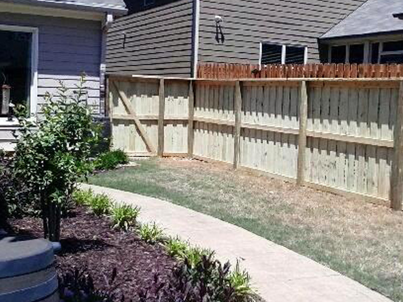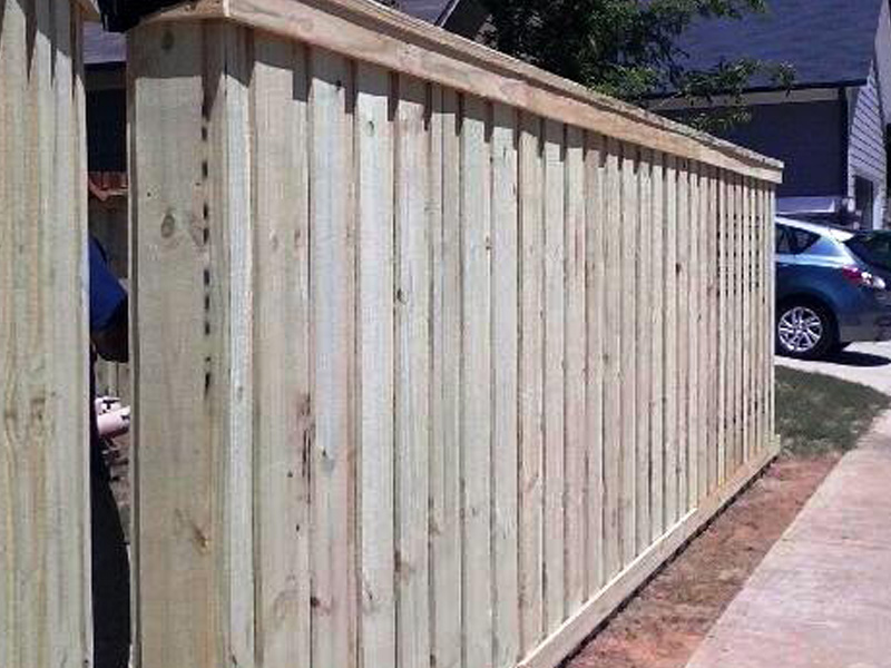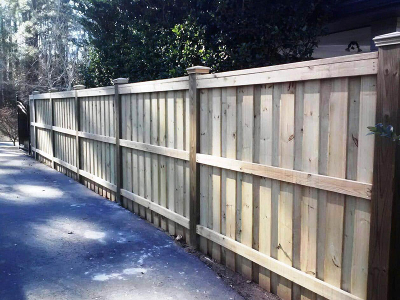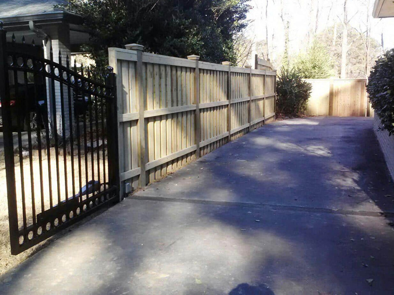 Luxury, beauty, and security all in one package with a board on board privacy fence with mahogany caps in Buckhead/Peachtree