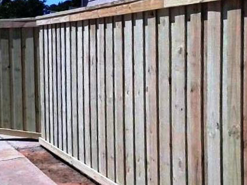 The ultimate privacy fence is a board on board design which does not allow any spaces between the pickets since they overlap. This particular fence incorporates 6x6 posts with one piece routed mahogany caps so they won't come apart over time.